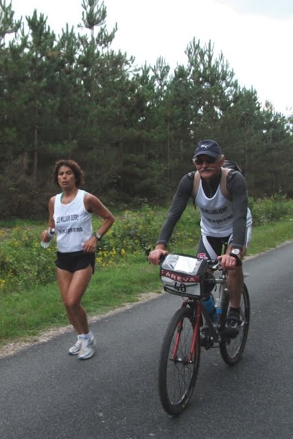 Yamina qui s'est convertie depuis quelques mois à la bicyclette et qui participe avec assiduité aux sorties du club qu'elle devrait rejoindre la saison prochaine a bouclé les 100 km de Theillay en 13 h 02 mn en compagnie de son" beau papa" qui lui servait de porte bidon. Si l'une a "galéré" toute la journée et terminé à l'énergie cette épreuve de fous, l'autre a pris beaucoup de plaisir à parcourir la campagne solognote.